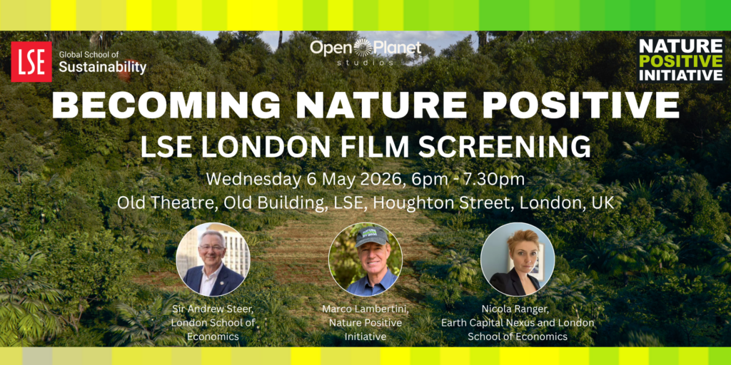 Speakers include Sir Andrew Steer, Professor in Practice in the Global School of Sustainability at LSE, Nicola Ranger, Executive Director of Earth Capital Nexus and Professor in Practice of Natural Capital, Risk and Finance in the Grantham Research Institute on Climate Change and the Environment at the London School of Economics and Political Science and Marco Lambertini, Convener of the Nature Positive Initiative.