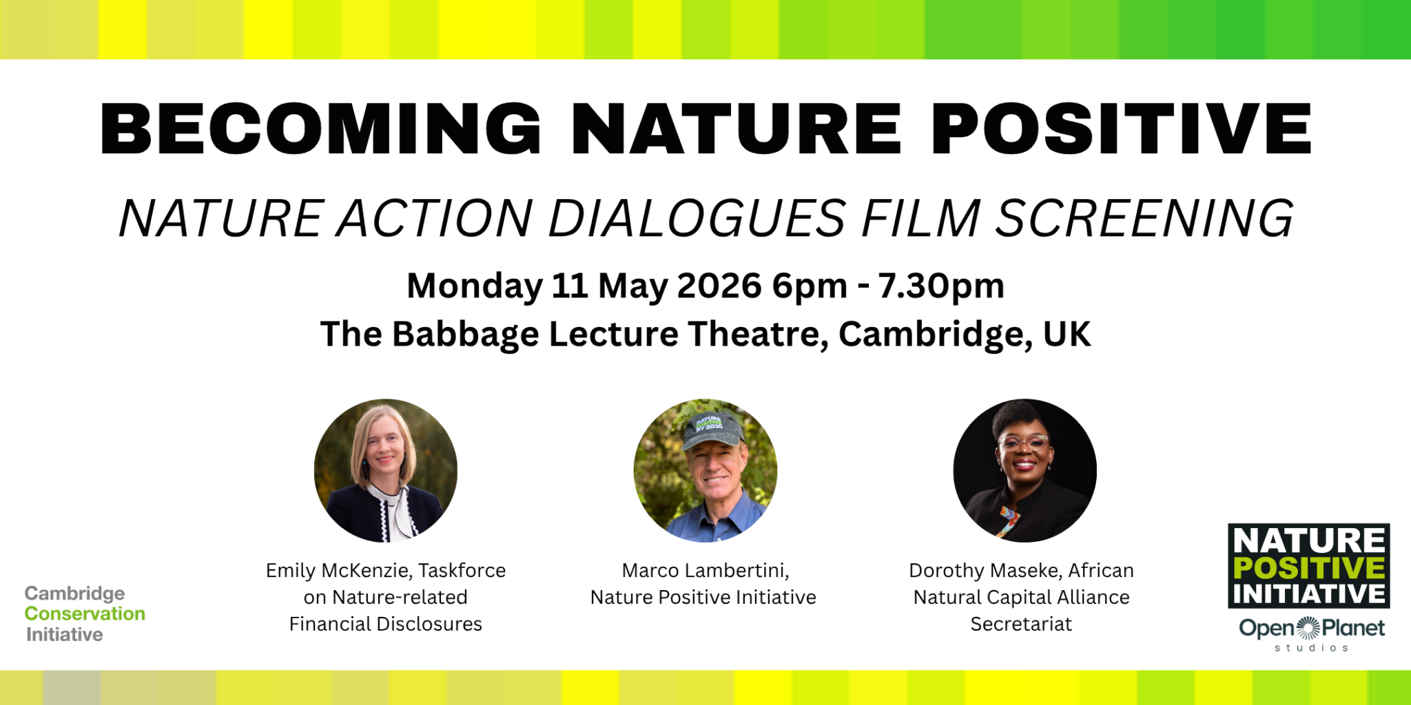 Speakers include Marco Lambertini, Convener at the Nature Positive Initiative, Emily McKenzie, Technical Director at the Taskforce on Nature-related Financial Disclosures and Dorothy Maseke, Head of the African Natural Capital Alliance Secretariat.